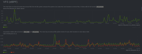 Netdata monitors different filesystems such as:- Virtual File System (eBPF)