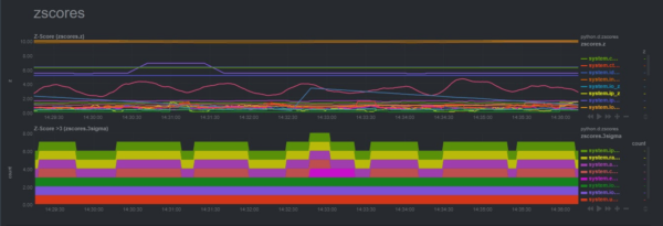 Z-scores visualize which metrics are deviating from their mean, and by how many standard deviations. It’s a simple calculation, but when performed every 5 seconds, using your own real-world metrics, it’s a phenomenally easy way to get instant feedback when essential services/applications are running amok.