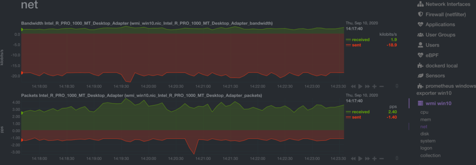 Our WMI collector is a good example of this logic in action. Instead of separate charts for bytes received and sent, we combine these metrics into a single chart to help you understand the status of your system faster.