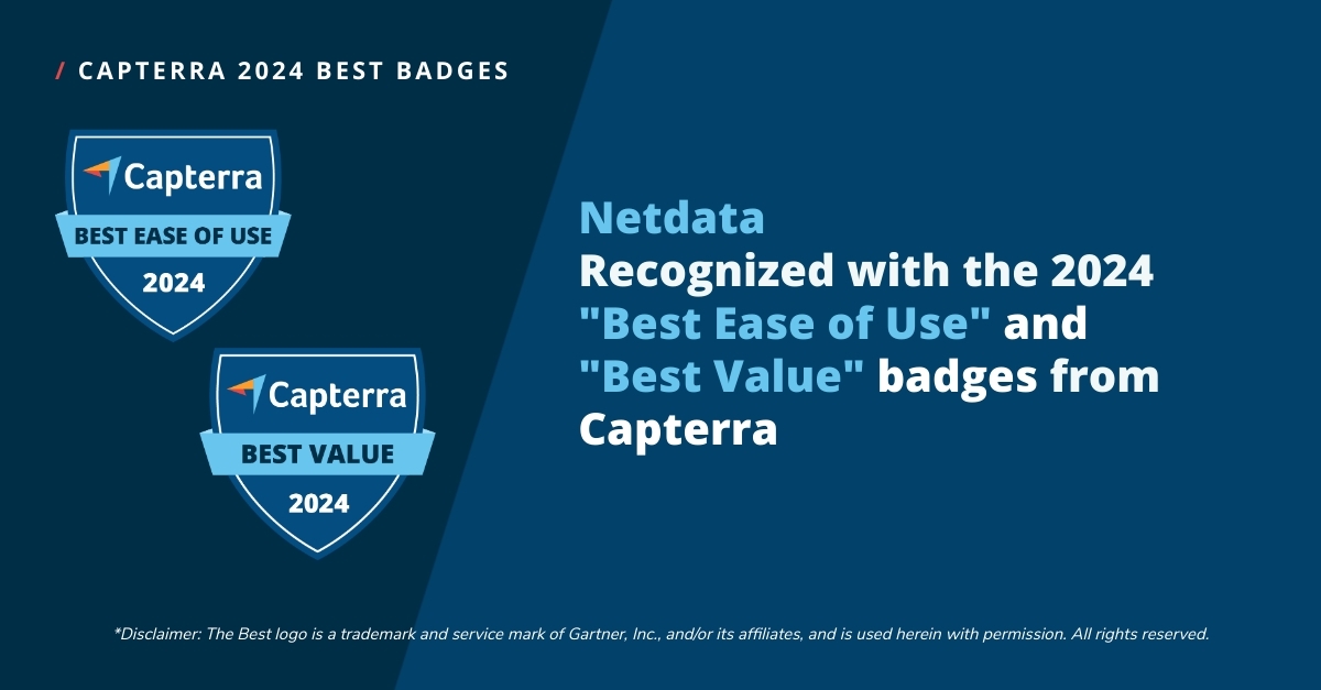 Netdata has been recognized with multiple “Best of” badges from Gartner Digital Markets brands