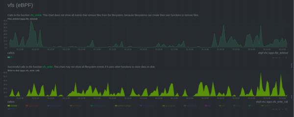 We now offer more enhanced metrics for monitoring Virtual File System (VFS) and also offer monitoring for the latency that some file systems need to execute actions to open files, write data on disk, read data from disk,delete files and synchronization, and more.