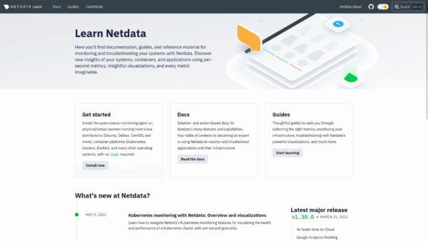 While not technically a part of the latest release of the open-source Netdata monitoring agent, we’re proud to have released a refreshed version of our documentation and educational site, Netdata Learn, just last week.