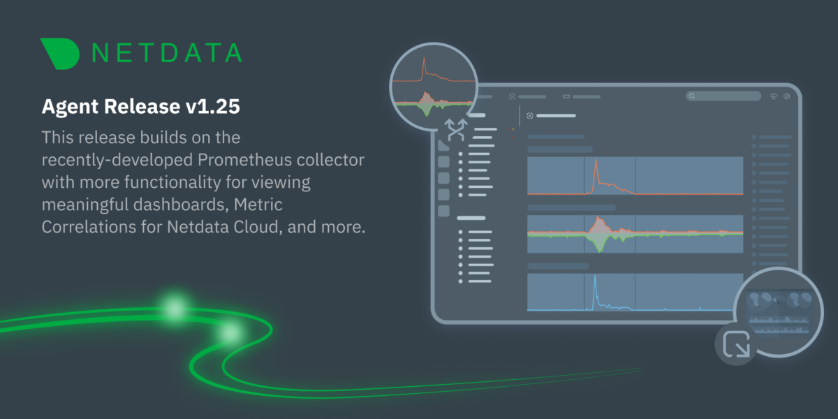 The v1.25.0 release of the Netdata Agent delivers on our commitment to make our metrics collection, visualization, and troubleshooting platform more stable and usable. We enhanced our recently-added Prometheus collector with user-configurable filtering and grouping, made dramatic improvements to the reliability of the Agent-Cloud link that streams metrics on-demand to your browser when you use Netdata Cloud, and more.