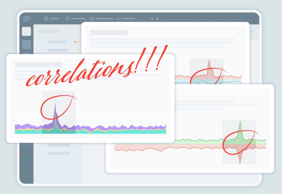 The Metric Correlations feature will look at all the dimensions available to see which have also changed in a significant way in comparison to a baseline window (which currently defaults to an area just before your window of interest, but will be customizable in the future).