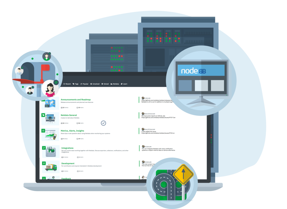We recently adopted NodeBB as our software of choice for building the Netdata Community. We have many good reasons for why we wanted to provide our community with a proper home online, but I wanted to cover some of the technical reasons for choosing NodeBB for our platform, and the many parallels between the NodeBB and Netdata projects, which was certainly a driving force behind this decision.