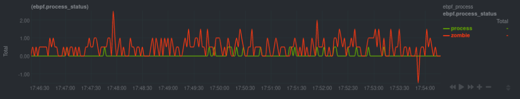 In the Process group, theebpf.exit chart monitors two cruical moments in the lifecycle of a process or thread. First, with the green process dimension, when the process/thread tells the kernel it’s ready to be stopped. Second, with the orange task dimension, when the process is stopped and removed from the queue. But what if these events do not happen in sequence, as expected?
