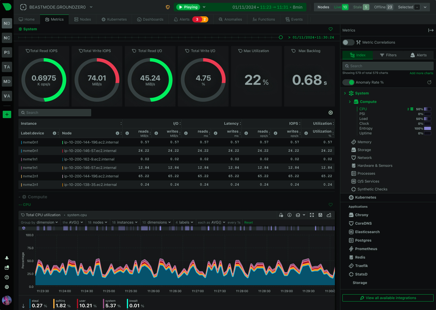 Monitor and analyze infrastructure health with per-second precision.